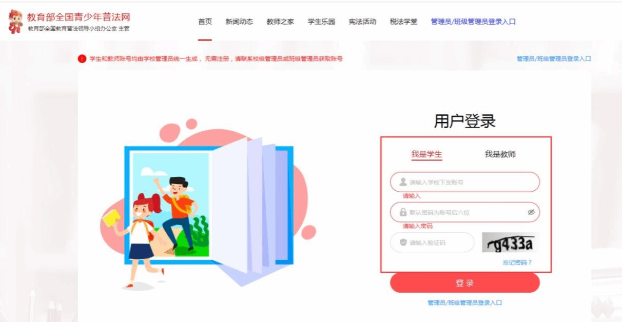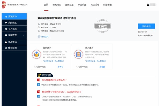 学生登录教育部全国青少年普法网//qspfw.moe.gov.cn/index.html(用户名:手机号,初始密码:手机号后六位),开始学习和测验。