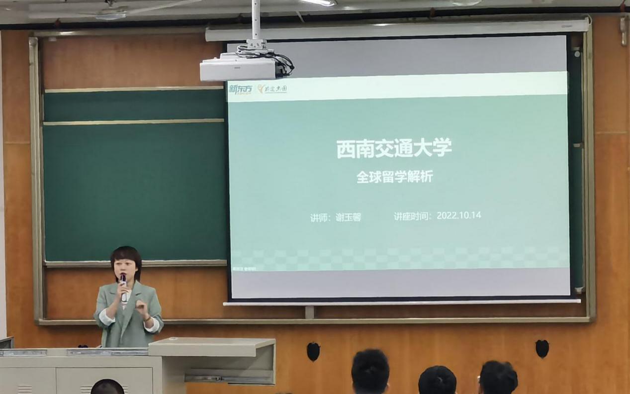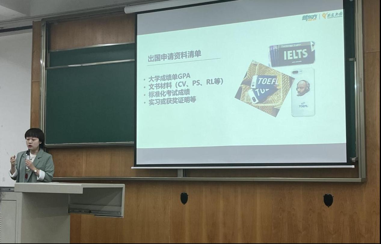 就业指导中心主办,本次讲座由被誉为“校园国际化教育讲师”和“学生公益留学规划指导师”的新东方讲师谢玉馨主讲,旨在为同学们解答有关全球留学前期准备及留学流程问题。