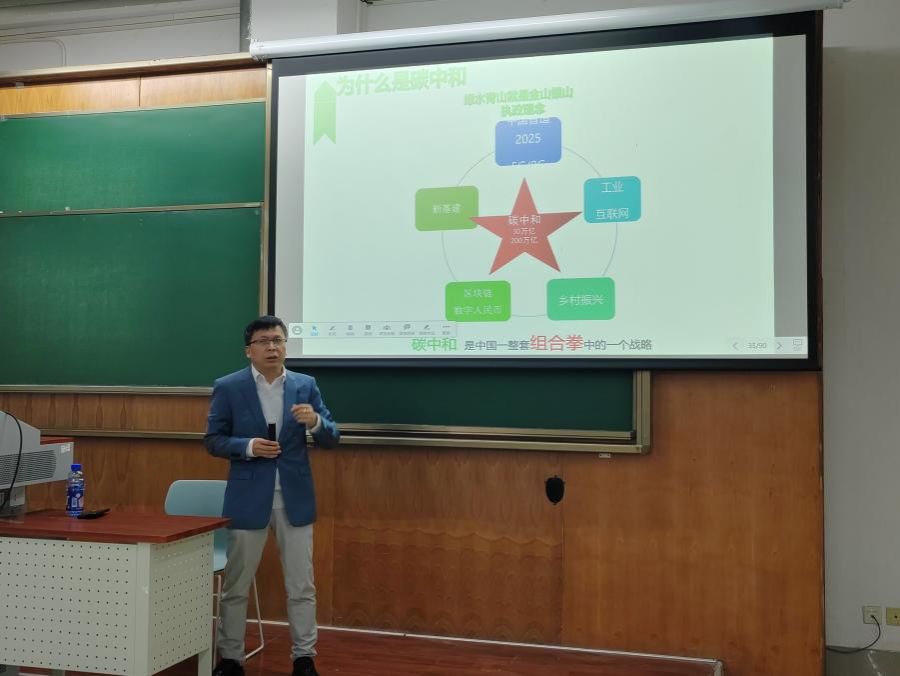 校外生涯导师李会生老师主讲,讲座从双碳环境规划与设计出发,讲解了职业规划的三个十年。