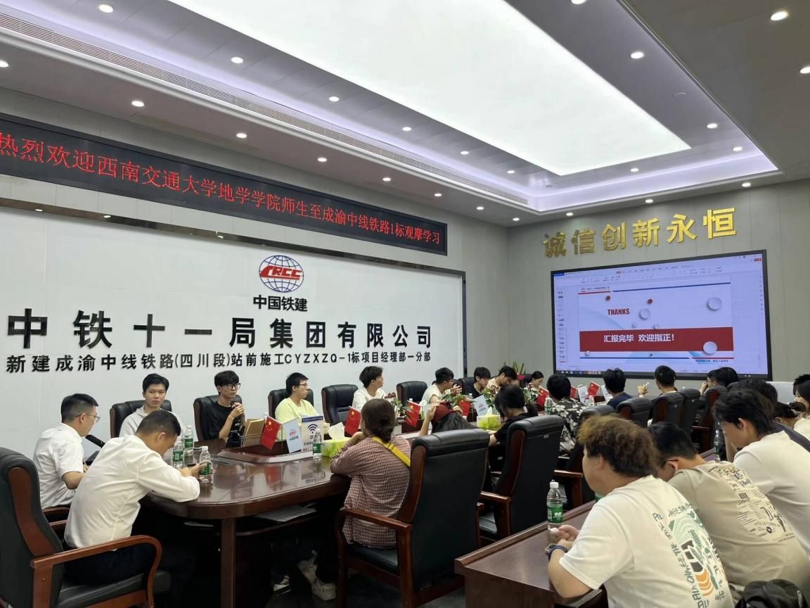 辅导员、就业指导中心指导老师李林遥带领“菁英计划”骨干班的41名团学骨干前往中铁十一局新建成渝中线铁路项目部进行参观学习。