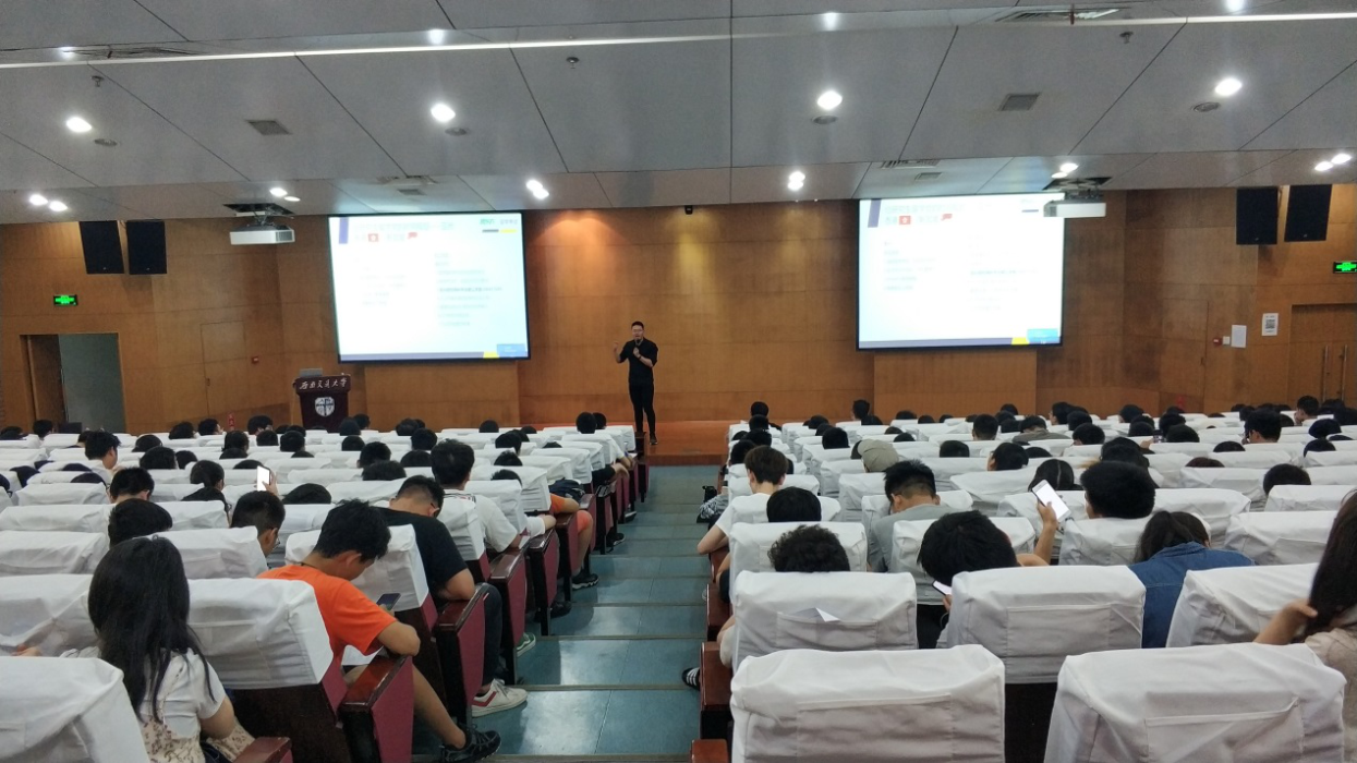 讲座的后半段,是由新东方优秀讲师药思齐老师主讲,药老师介绍到他是新东方留学北美片区的负责人,在讲座中讲到关于出国留学各类事项,从准备到语言考试、到申请以及与教授套磁等诸多内容,过程中干货满满。同学们表示深受启迪。