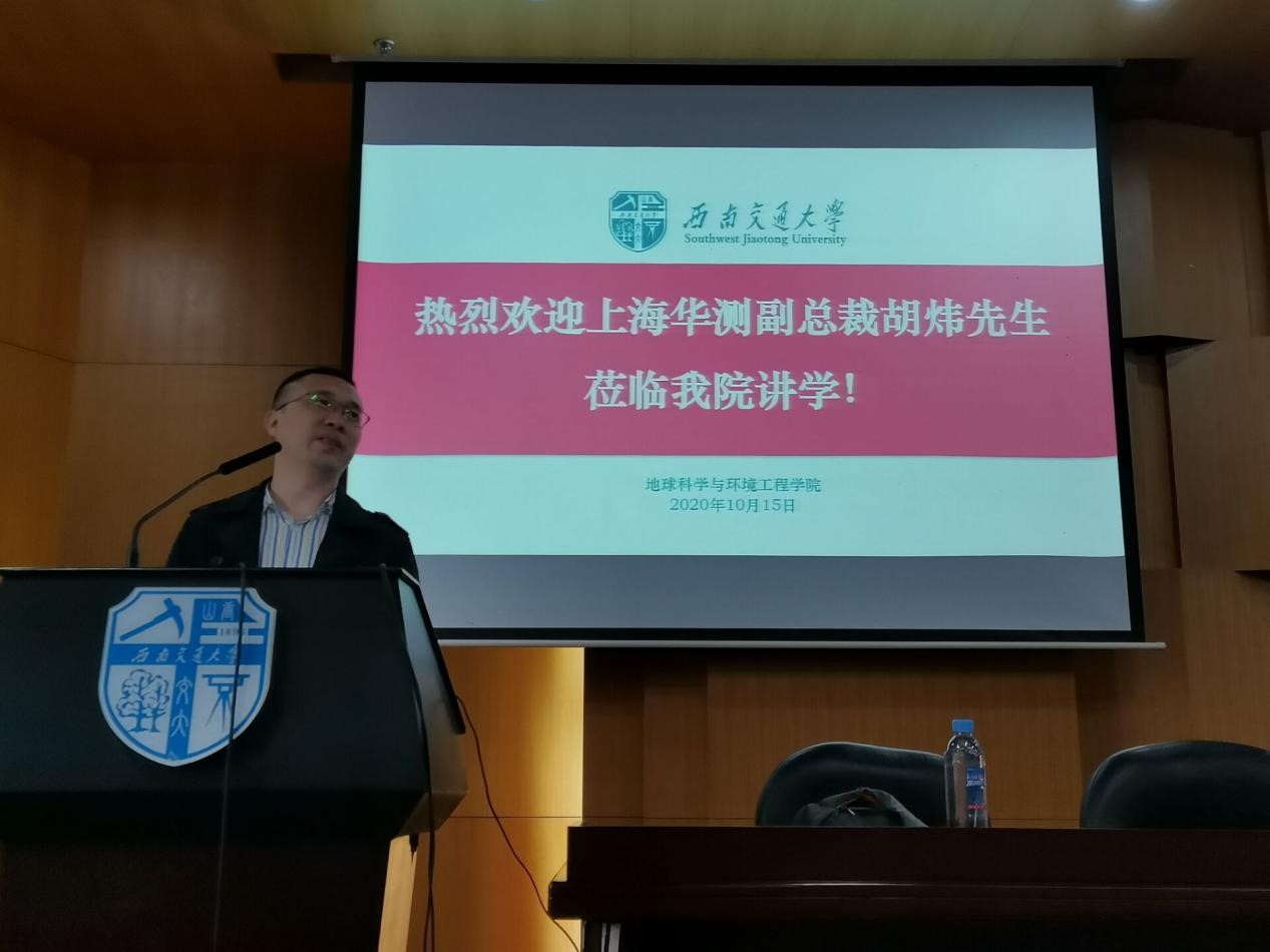 2020年10月14日10时,地球科学与环境工程学院于犀浦校区图书馆二号报告厅举办“登顶珠峰”讲座,本次讲座由上海华测导航技术股份有限公司副总裁胡炜主讲,地球科学与环境工程学院党委副书记傅尤刚主持,地学就业指导中心协助举办。