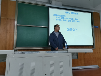 面对同学们提出的“导师如何选择”的问题,胡教授以学院师资力量为例,结合研究生:“导师>方向>城市>学校 ”的考研保研选择标准,向同学们简单介绍了导师的几种类型:项目工程类,学术研究类,就业企业类,为有意保研考研的同学们指明了方向。