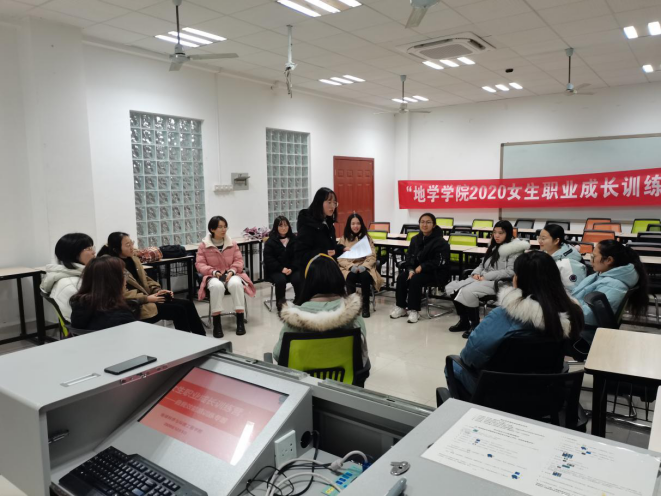 为帮助我校女大学生提升求职竞争力,提升个人素养和魅力,在复杂的就业形势中学会自强、自立、自尊、自爱,助力其从校园顺利走向社会,敢于表现自我,实现更快更好更高质量就业,2020年12月5日,“女生训练营”系列活动开营仪式及第一期活动——自我效能感训练在犀浦校区四教举行。本次活动由就业指导中心郑文娇老师主持。