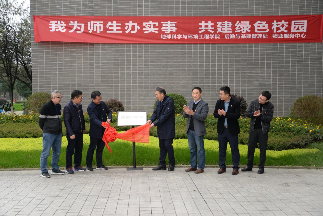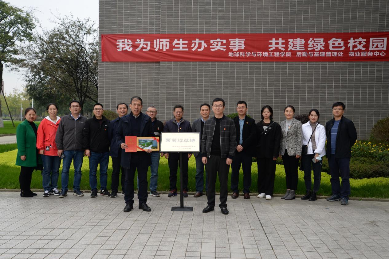 首先学院领导与研究院负责人在四教前空地处汇合,共同为“茵茵绿草地”揭牌,随后学院领导向研究院颁发证书,并合影留念。