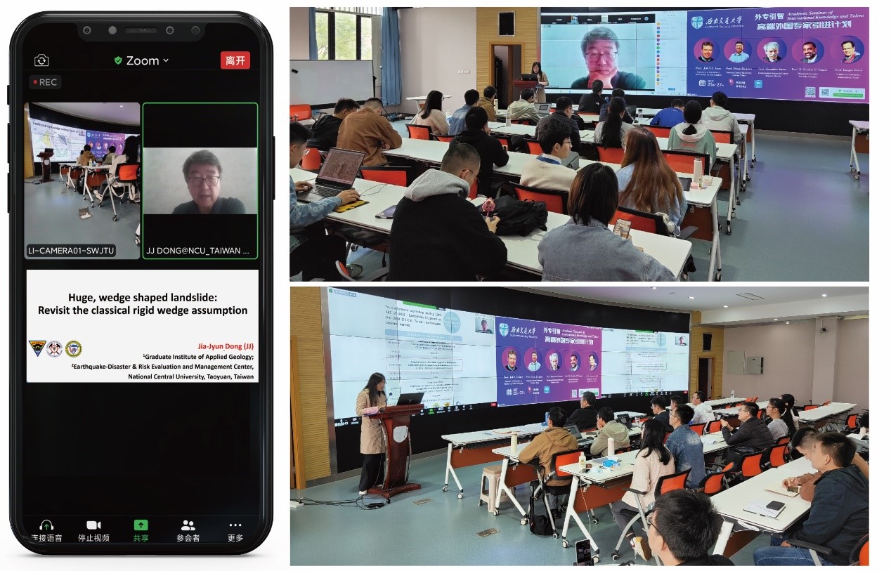 10月26日上午,台湾中央大学地球科学学院副院长、特聘教授董家鈞(Jia-Jyun Dong)受邀发表题为《Huge, wedge shaped landslides: Revisit the classical rigid wedge assumption》与《Orientation uncertainty of weak planes and rock slope failure probability》的两场学术报告。
