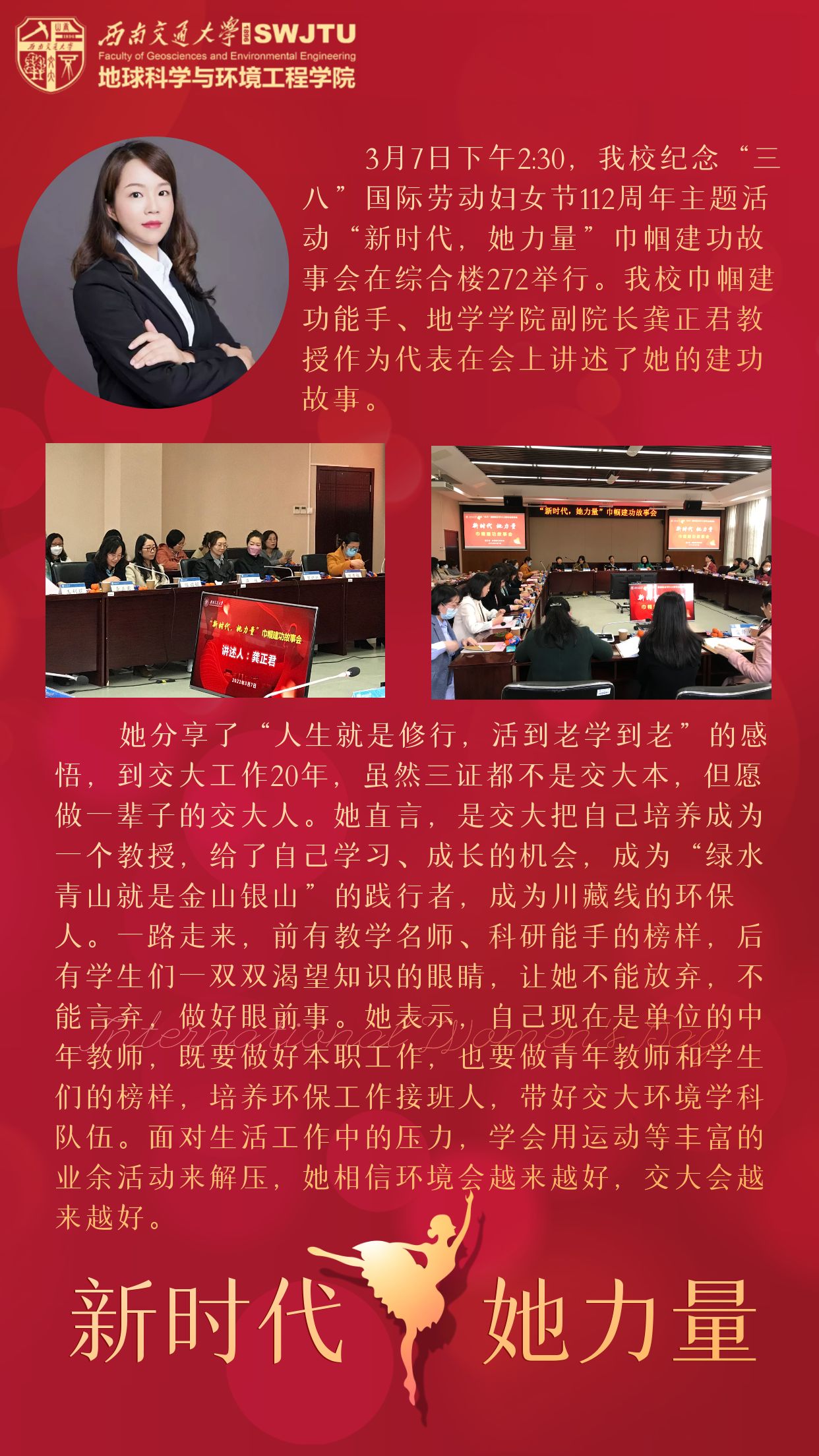 我校巾帼建功能手、18H 副院长龚正君教授在纪念“三八”国际劳动妇女节112周年主题活动“新时代,她力量”巾帼建功故事会上作分享交流