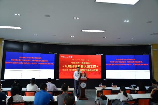 4月28日下午,由川藏铁路刘彬生态环保创新工作室牵头人、中铁二院集团公司劳模刘彬主讲讲座“川藏铁路环境保护的挑战与思考”在X4243举行。18H