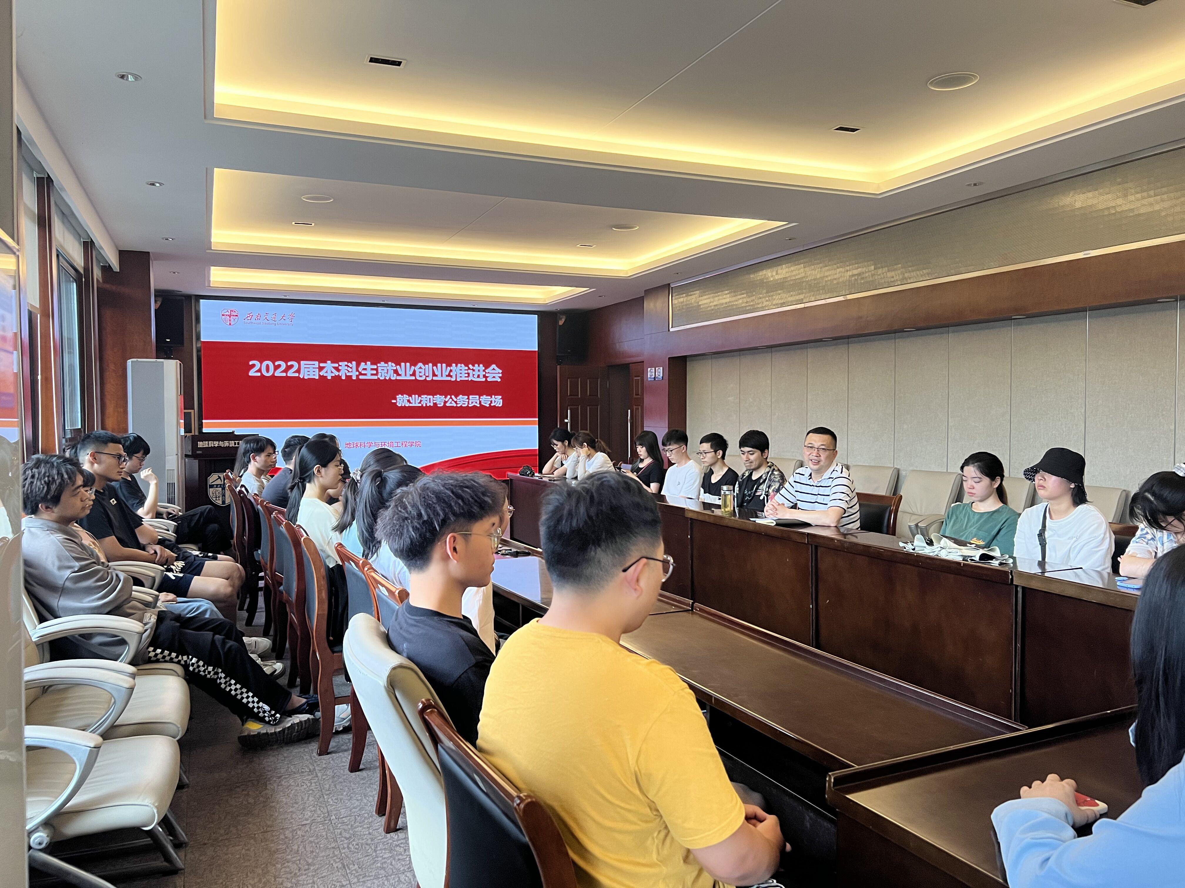 结合学生就业实际情况,分层分类开展就业创业推进会。在5月30号,X4520开展了拟就业和考公务员专场推进会、在5月31号,X4243开展了拟升学二战专场推进会。学院党委副书记、纪委书记傅尤刚主讲,毕业班辅导员孙惠敏、王姝歆、罗然及全体未落实就业去向的同学们参加了此次会议。