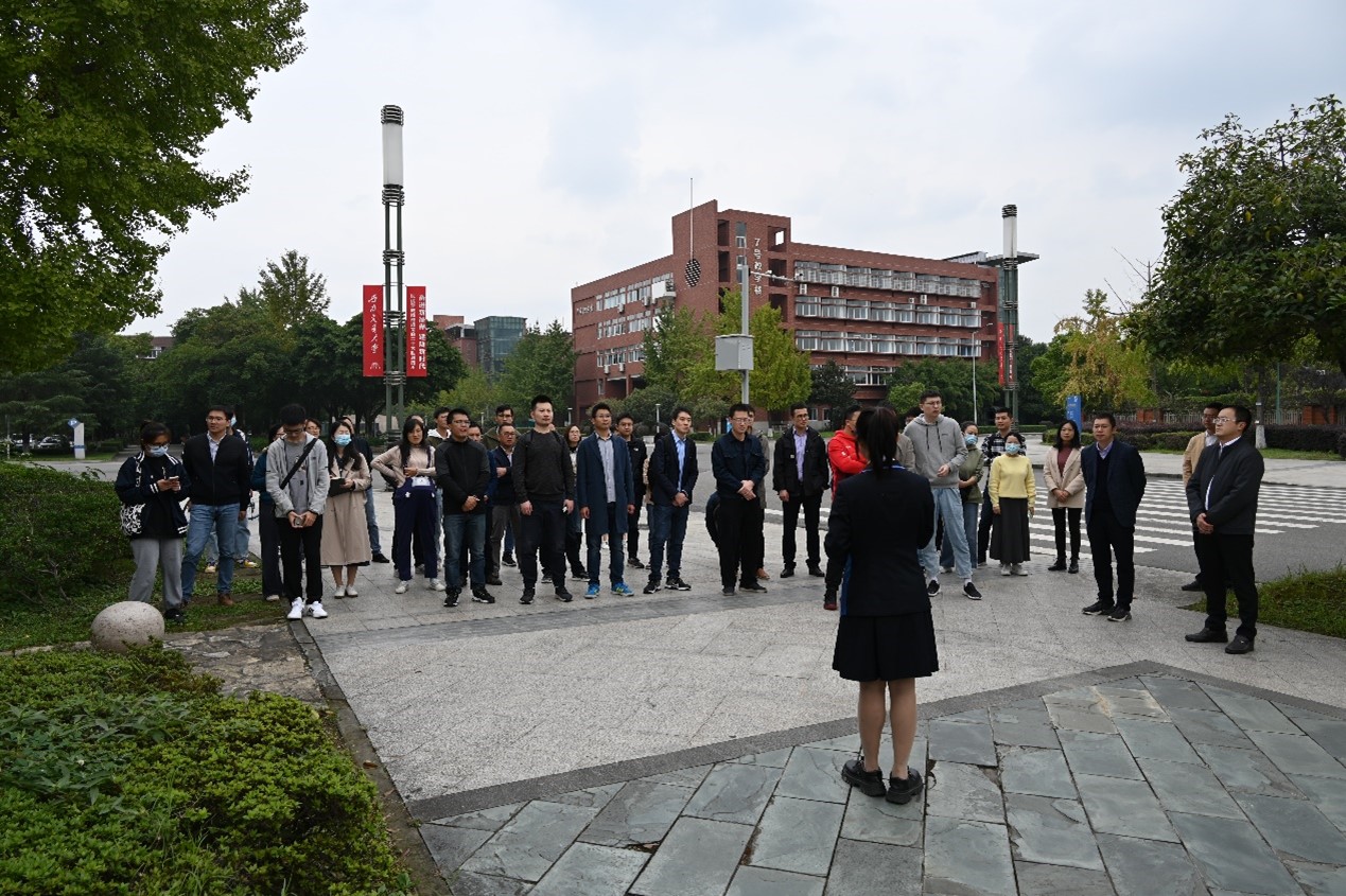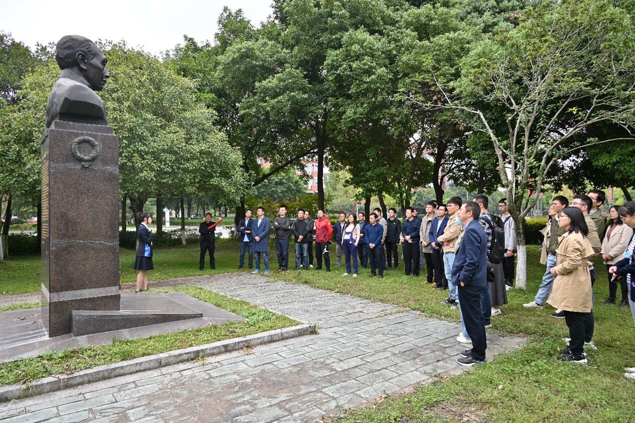校园大使团成员张禹淇带领老师们走中轴线,重温学校126年办学历程,领略大师风采。从南大门到“竢实扬华”墙再到四号教学楼,从标志性建筑到杰出人物塑像,从学校历史发展到精神内核培育,讲述了 “竢实扬华,自强不息”的交大精神、“精勤求学,敦笃励志,果毅力行,忠恕任事”的交大校训、“严谨治学,严格要求”的优秀传统,展现出学校教师风清气正、一心为国的高尚品质,对在场青年教师产生积极深远的教育意义。
