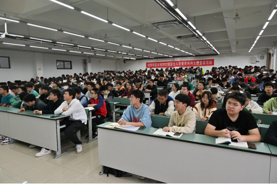 党委副书记、纪委书记傅尤刚主讲,全体新生辅导员和全体本科新生参加教育会。翟琦主持。