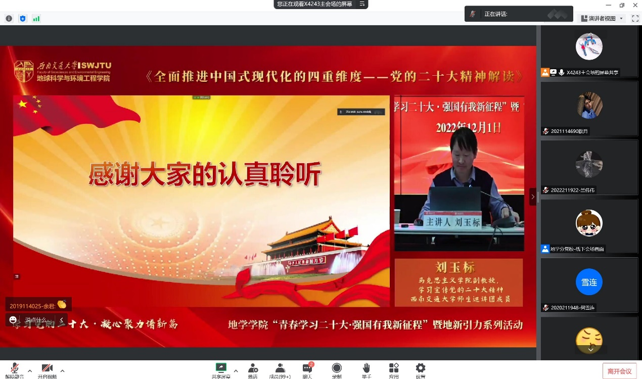 在X4243会议室以线下、线上,集中和个人自行收看相结合的方式开展“党的二十大精神专题宣讲”活动。本次讲座由18H