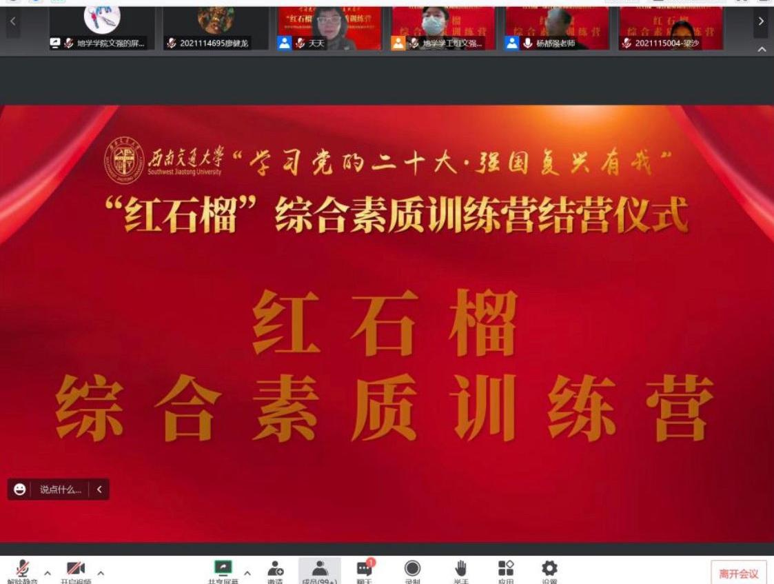 杨都强对“红石榴”训练营进行总结,他回顾了本期训练营的主要内容与重点环节,指出在面临各类不确定性因素的条件下,训练营成员以确定的态度共同努力,笃行不怠,勇毅前行,通过理论学习、集体实践、自主学习与比赛促学等多种方式,有效实现了“强化责任担任、坚定文化自信、提升综合素质”的目的,总体高质量地完成了本期训练营的培训工作。同时,杨都强特别表达了对全体营员的感谢与祝贺!