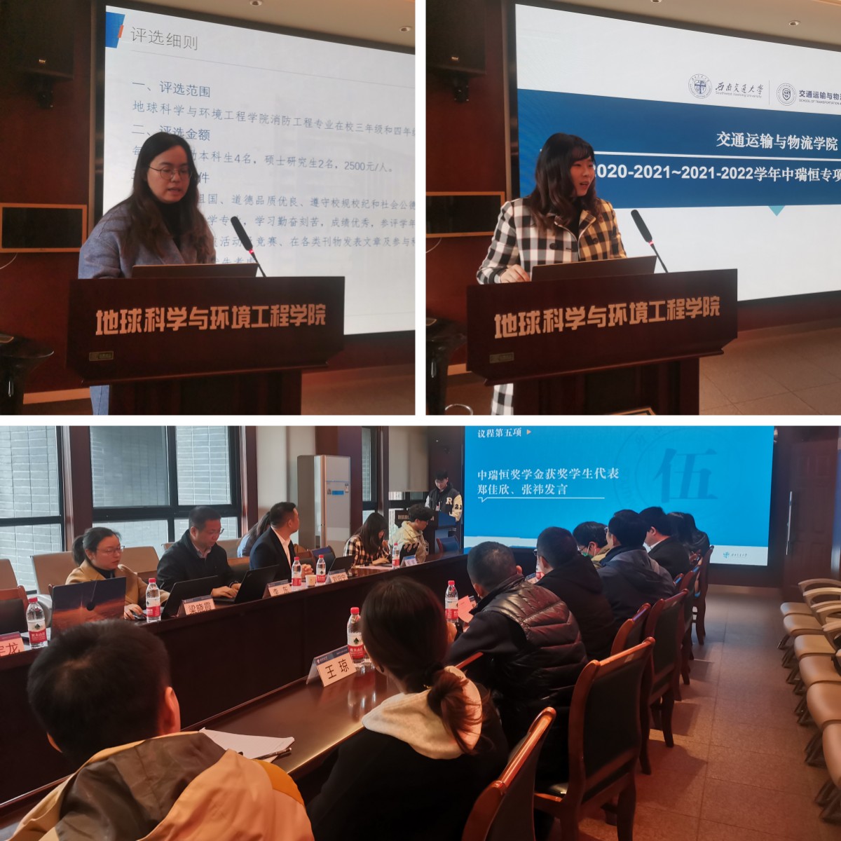 辅导员李婧、权宜就近两学年中瑞恒奖学金的评选情况、获奖学生的发展作汇报,获奖学生代表同样以亲身经历深深感谢中瑞恒公司为大学生成长与发展做出的贡献。两度获得中瑞恒奖学金的2019级学生张祎说道:“饮水思源,我们心怀感激,励志成才,才是对所有关心和帮助过我们的人的最好回报!”
