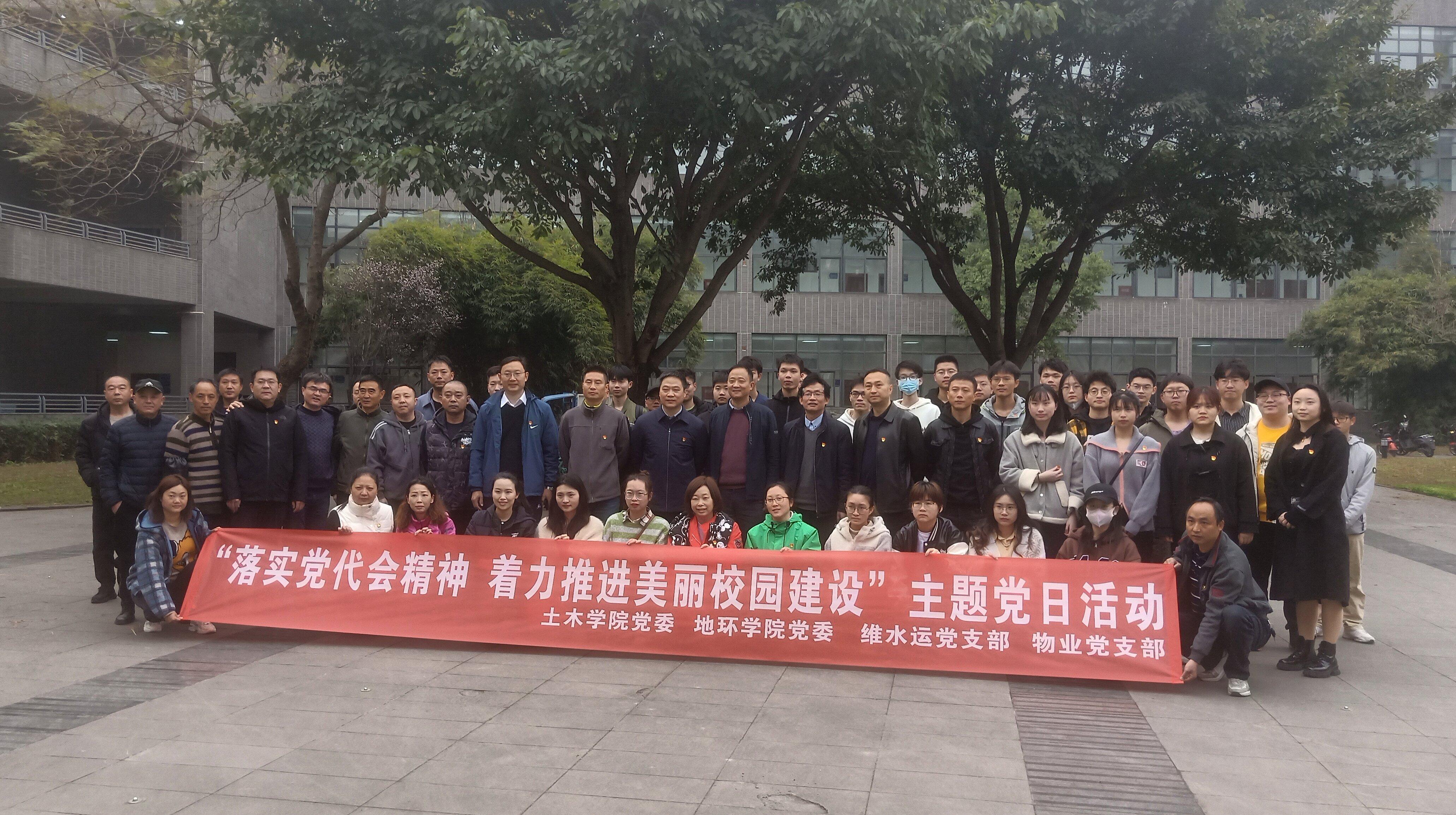 党委联合土木学院党委、维水运党支部、物业党支部,开展主题为“落实党代会精神,着力推进美丽校园建设”的党日活动,对犀浦校区四号教学楼地面区域、地下停车场进行环境整治与全面清扫。学院中共预备党员、党员发展对象、入党积极分子共10人报名清扫地面区域,18H