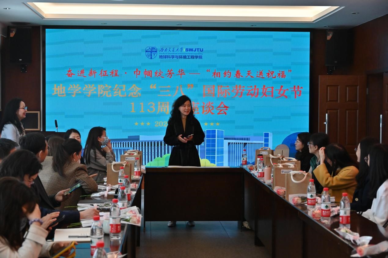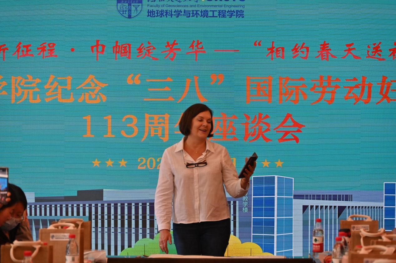 龚正君副院长分享了她眼中地学女性巾帼建功的风采。她说地学女性是一支有力量、有能力、有担当的队伍,能够在科研的平台上、在教学的讲台上、在厨房的灶台上、在美丽的舞台上绽放自信的光彩,衷心祝愿全体女教职工永葆自信美丽,继续为学院发展贡献智慧和力量。