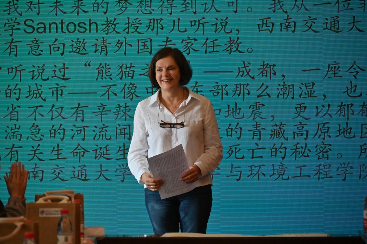 外籍女专家Inna Safonova教授作为新入职女教师代表分享了她不远万里、攻克时坚、碾转多地入职学院的感人故事,表达了对四川成都及交大的喜爱,由衷地感谢学院党政和引智团队给予她的大力支持、帮助和关心,并送上她真诚美好的祝福。