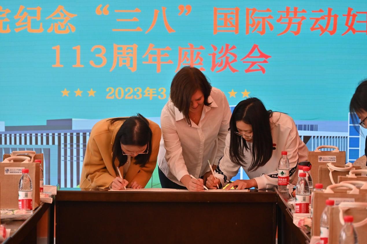 而后,举行了欢迎2020年以来新入职女教职工仪式,与会者观看了新入职女教职工风采视频。男教职工代表为新入职女教职工送上节日祝福。女教职工们现场书写“相约春天送祝福”寄语,表达对同事、学院和学校的美好祝愿和期许。