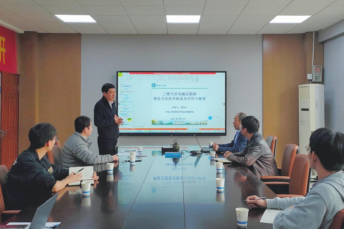 地球科学与环境工程学院邀请,中南大学地球科学与信息物理学院戴世坤教授赴我校做《三维全息电磁勘探理论方法技术体系及应用与展望》学术报告。地球科学与环境工程学院副院长赵晓彦致欢迎词,张志厚副教授介绍了戴世坤教授的主要科研成果。