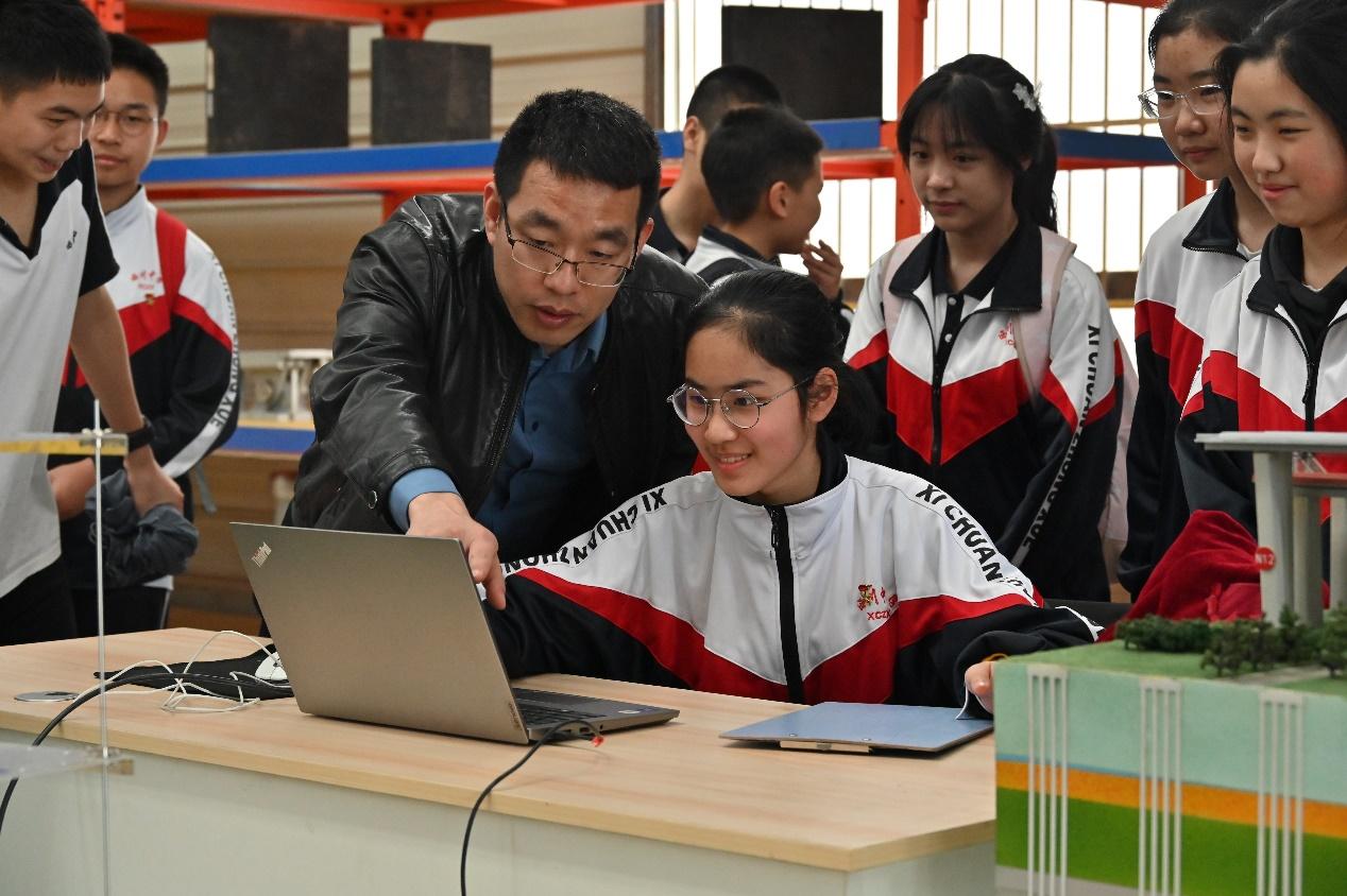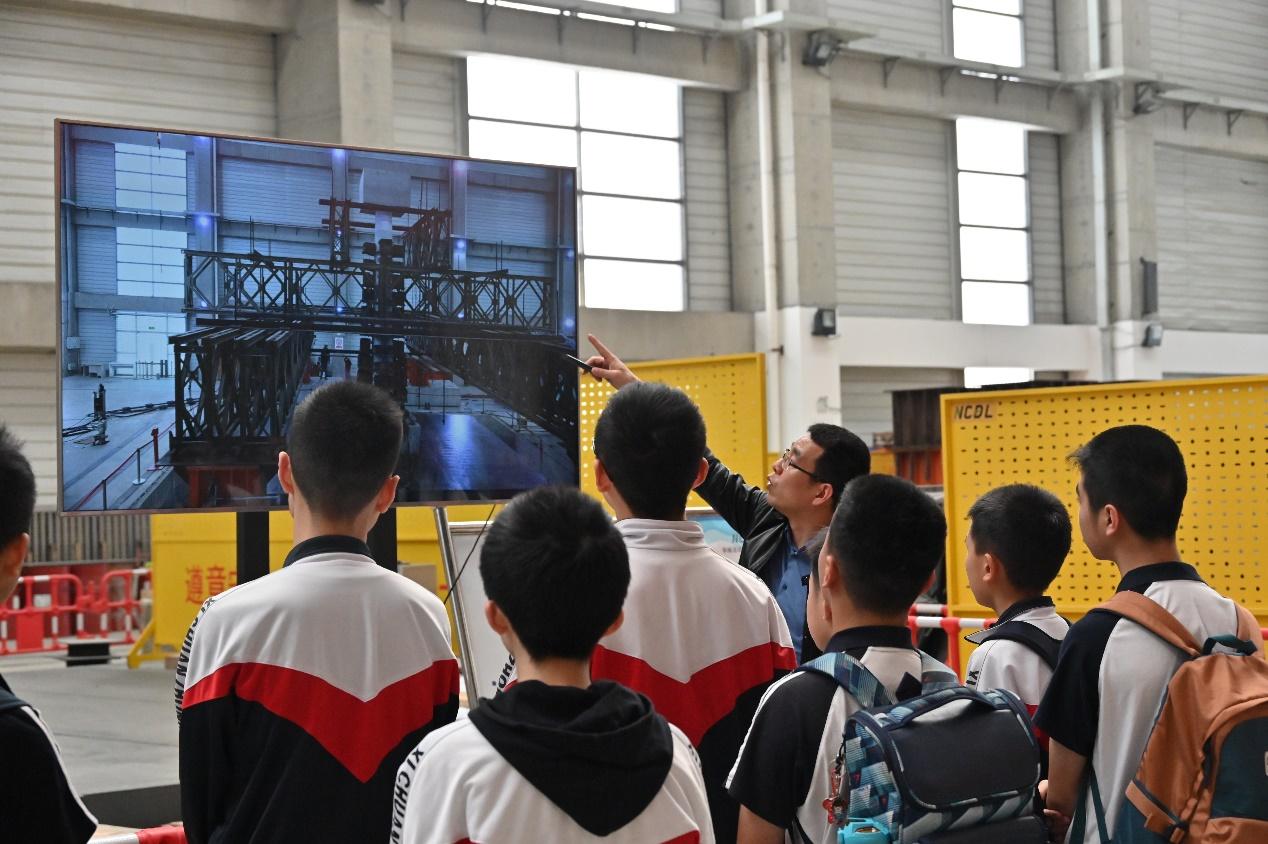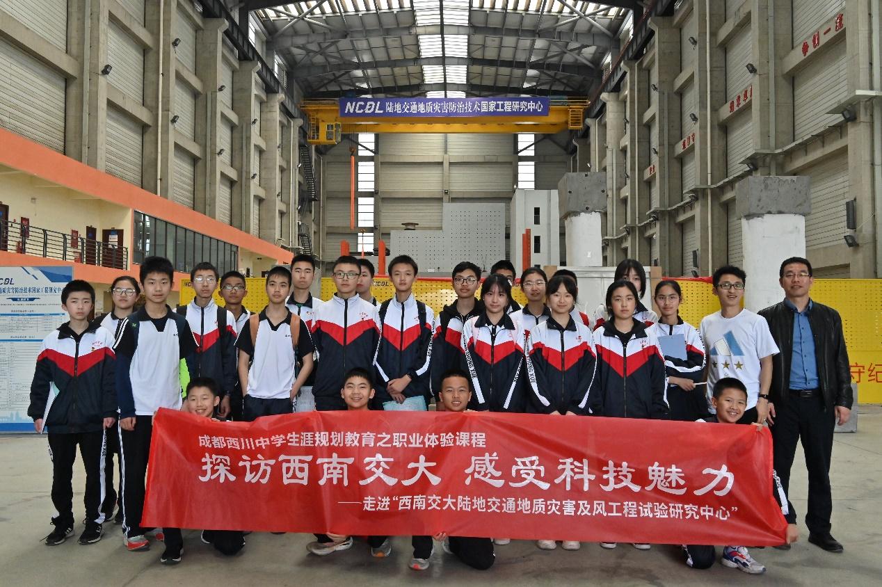 午后,西川中学的学生前往陆地交通地质灾害防治技术国家工程研究中心参观,研究中心的王武斌老师为同学们介绍了中心发展及取得的科研成果,以及目前国内最大的地震模拟振动台,同时让同学们参观了多功能大型智能抗震体验房。同学们也在王武斌老师指导下亲身体验结构共振实验。