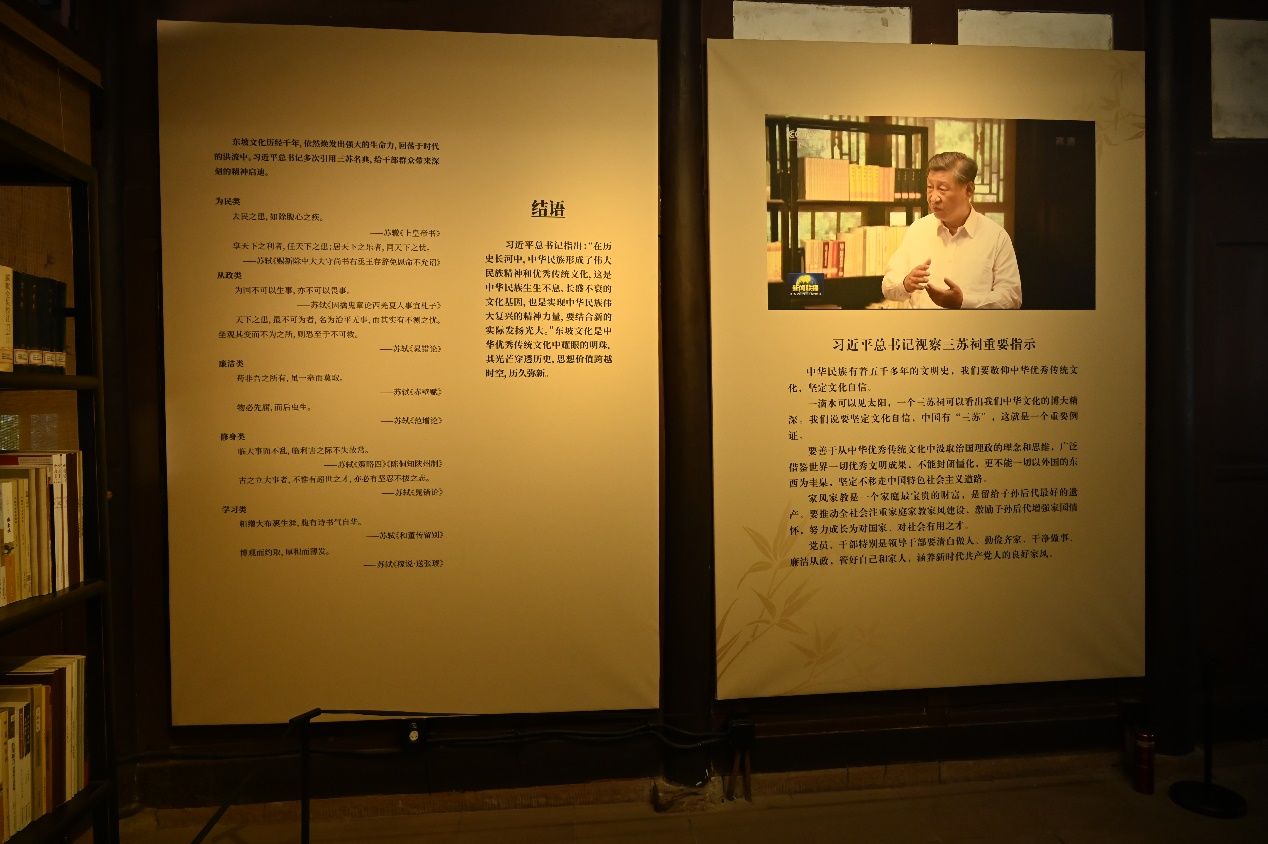 步入《中国有三苏——眉山苏氏的家国情怀》主题展厅,老师们沉浸在文物、园林和多媒体交互的场景中,深刻领悟了三苏“裕人约己吾家世”的深厚家风,“忠诚为国始终忧”的爱国热情。通过参观学习,每位老师都感同身受,将中国人一贯的个体生命与国家、民族息息相关的家国情怀又一次烙在心中,接受了一次饱含家国情怀的精神洗礼。
