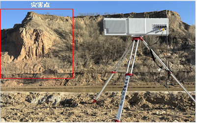 团队成员将相控阵雷达布设在Y558公路黄河对岸对边坡进行远程监测,相控阵合成孔径雷达则是一种高分辨率成像雷达,具有全天时全天候获取类似光学的高分辨雷达图像的优势。通过比较多幅雷达图像的相位变化,即干涉测量,可以计算被观测目标的微小连续位移。雷达设定自动采集数据,采集间隔为1分钟,采集起止时间为2023年12月25日16时04分至2023年12月25日18时00分,共获取数据116个。通过对雷达监测数据的分析,发现被观测边坡变形部位主要位于灾害岩体顶部。在2h的观测期间内最大位移量超过10mm。通过与光学图片、现场视频录像以及LDTK-SAR数字相控阵微变雷达观测数据对比分析,Y558公路灾害点山体存在离散分布位移情况,持续位移导致岩体剥落,威胁下方公路安全,亟需进行治理。