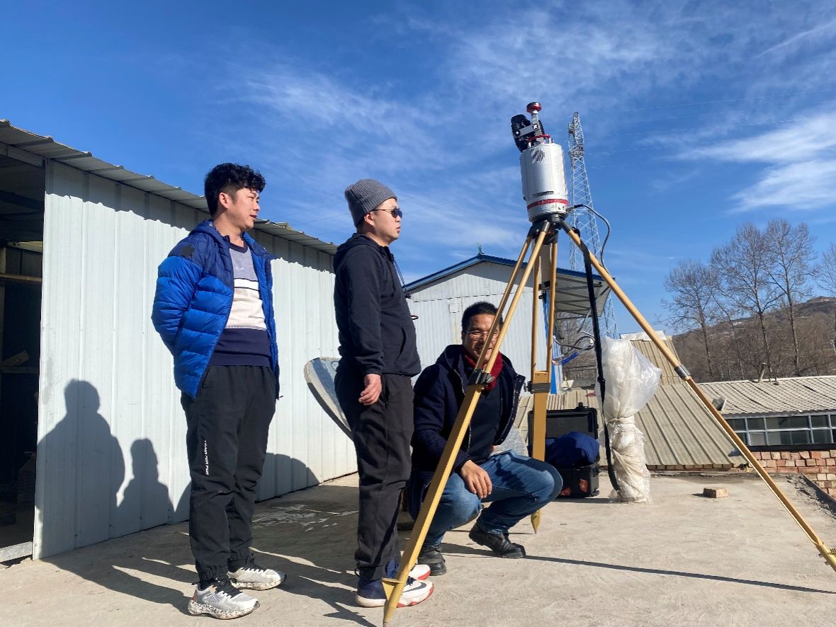 为获取滑坡体三维形貌与变形发展规律,团队采用LDTK-SAR数字相控阵微变雷达、三维激光扫描仪无人机倾斜摄影技术对滑坡进行监测。赵修成博士在滑坡外的村庄房顶布置多个扫描点,对该滑坡的整体轮廓进行了点云获取,通过Riscan Pro平台对多个扫描站点云数据进行智能拼接、去噪等预处理,形成了滑坡整体的点云模型,为隐蔽灾害的判识提供了重要的数据支撑。