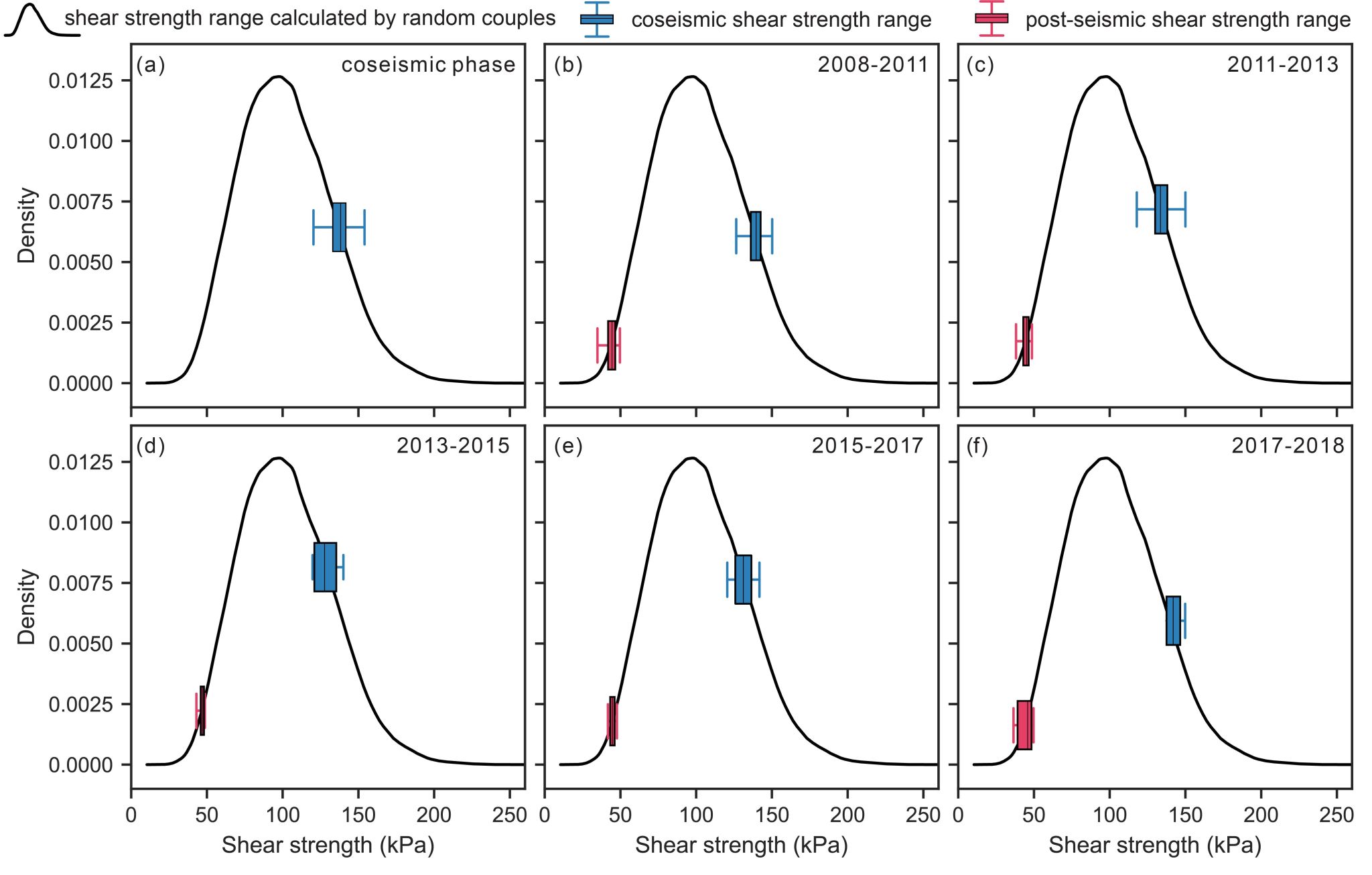 图1 多时序震后滑坡反演边坡震前/后抗剪强度分布(以3m厚花岗岩滑坡为例)
