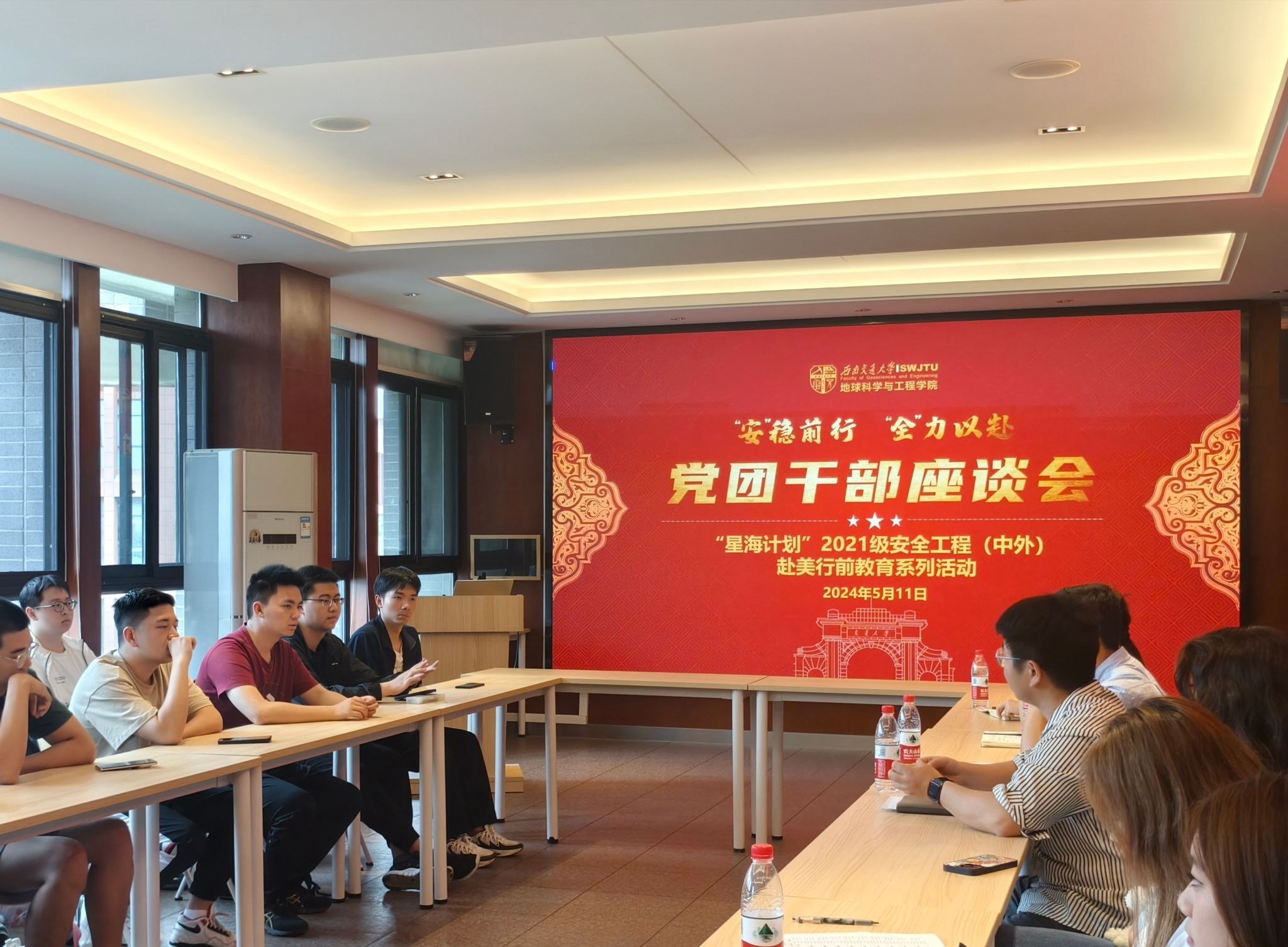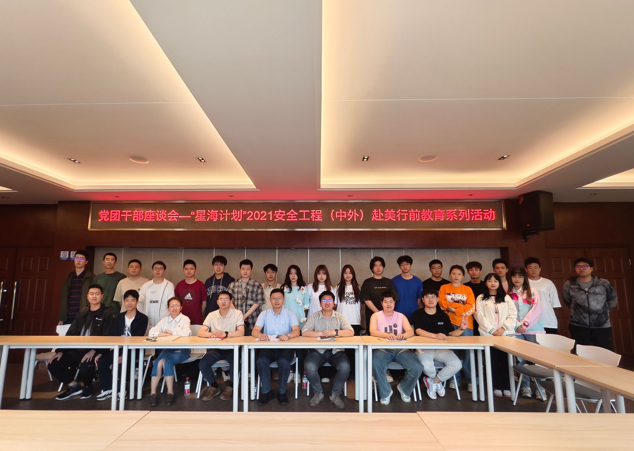 为帮助即将赴美学习的21级安工同学找准政治站位,明确使命担当,理清党团管理办法,“星海计划”2021级安全工程(中外)赴美行前教育系列活动之党团干部座谈会于2024年5月11日下午在X4520举行。18H