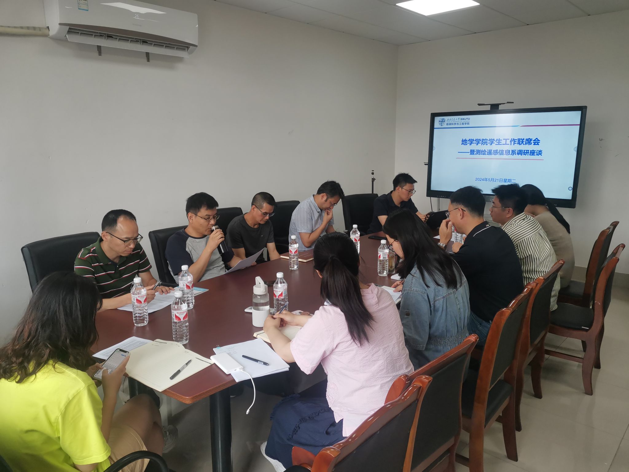 于5月21日上午9:30在X4536会议室召开学生工作联席会,学院党委副书记郑波,院长助理、测绘遥感信息系系主任曹云刚,测绘遥感信息系教师代表及测绘类学生全体辅导员参加会议。