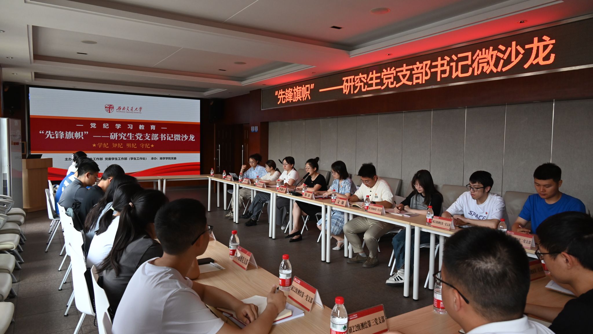 在X4520会议室开展了“学案例 明党纪 知敬畏 守底线”研究生党支部书记微沙龙活动,本次微沙龙由党委研究生工作部和党委学生工作部主办,18H