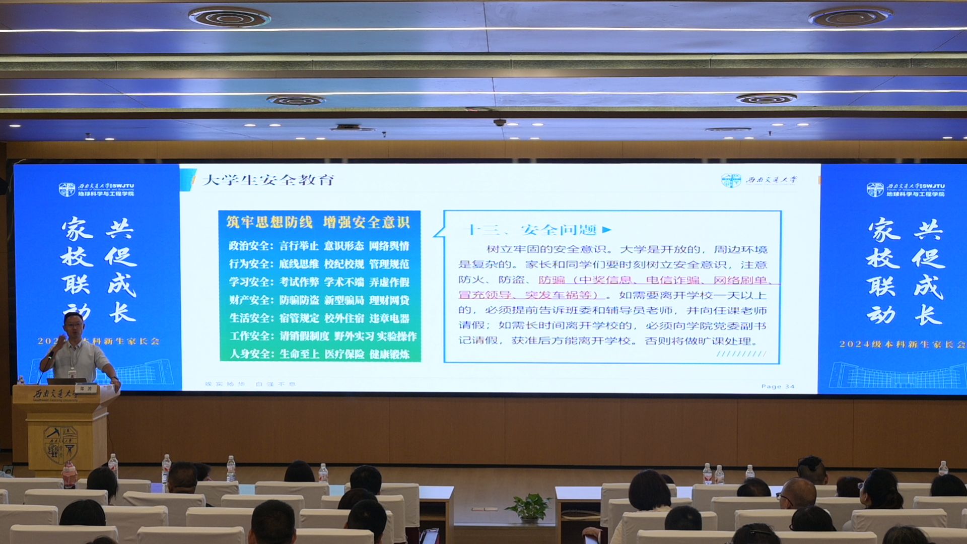 党委副书记郑波主讲,24级新生辅导员文强主持,学院团委书记杨都强、24级辅导员姜茜以及24级本科新生家长参与。