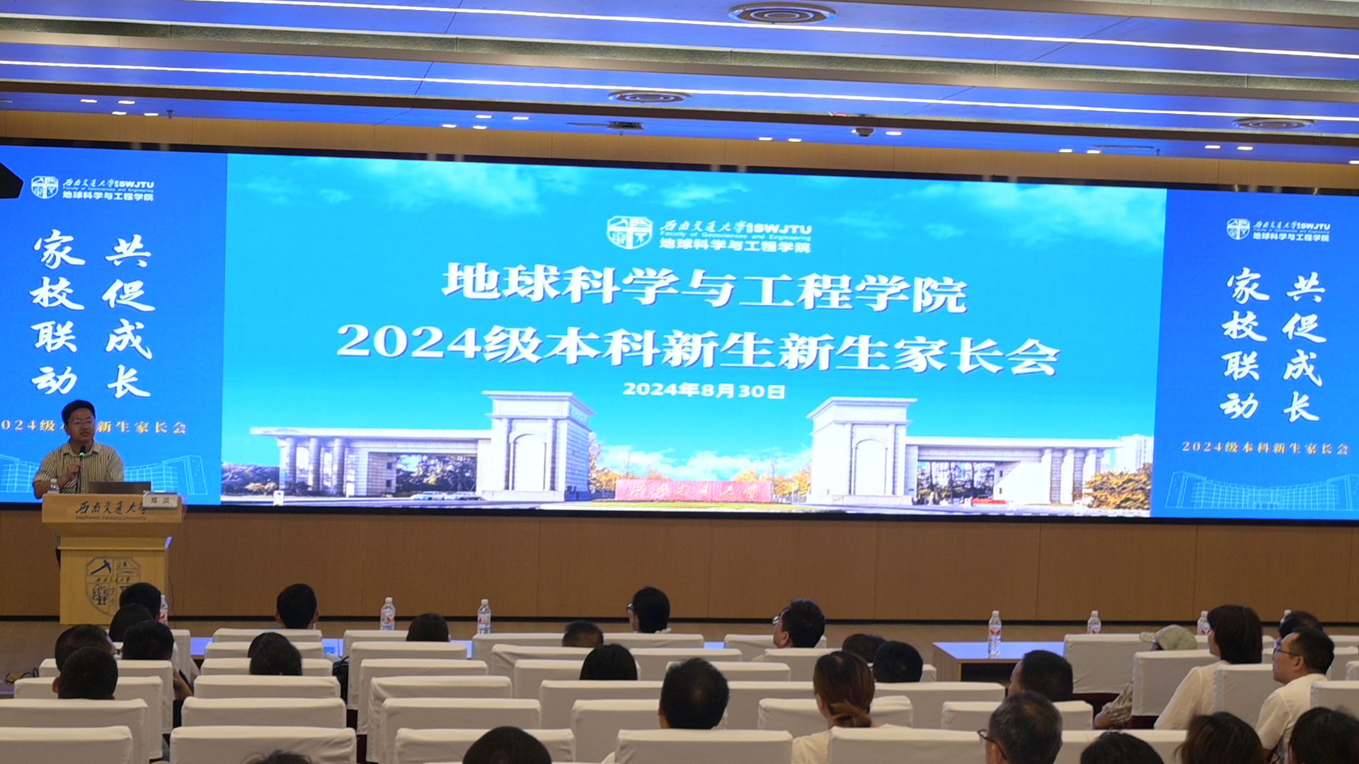 犀浦校区图书馆一号报告厅举办2024级新生家长会,旨在帮助家长了解学院学科建设情况以及学生的未来规划方向,促进家校之间建立桥梁,共同推动学生成长。会议由18H