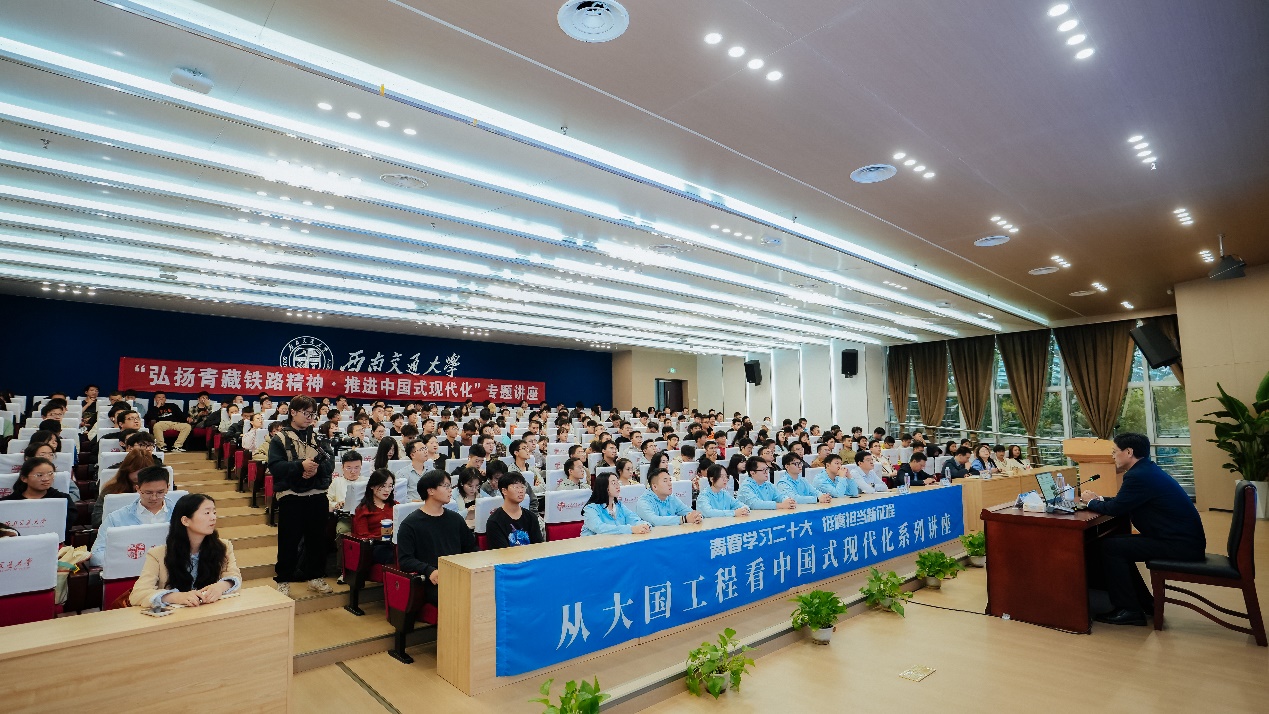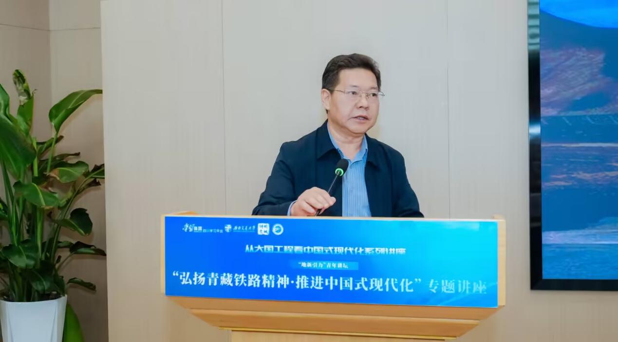 10月18日下午,在犀浦校区图书馆二号报告厅,学校特邀中国工程院院士卢春房做客“从大国工程看中国式现代化”系列讲座“地新引力”青年讲坛,以“弘扬青藏铁路精神”为题,给现场师生们带来了一场充满爱国主义情怀、直击心灵的思政报告。18H