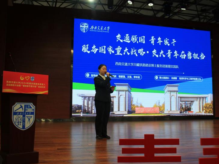 在大会上,学院的川藏铁路建设博士服务团作为优秀实践项目做分享交流。川藏铁路建设博士服务团第四次实践团团长、18H