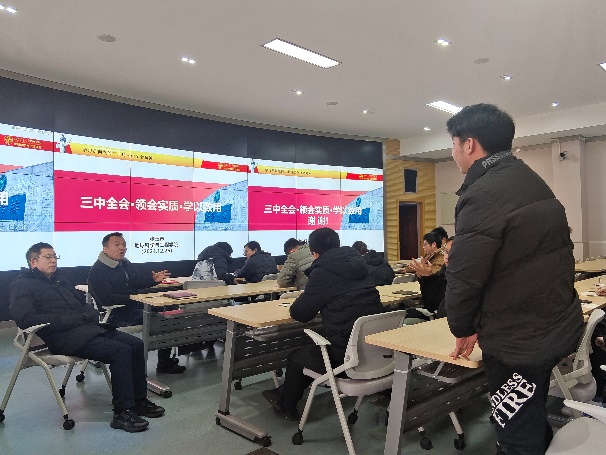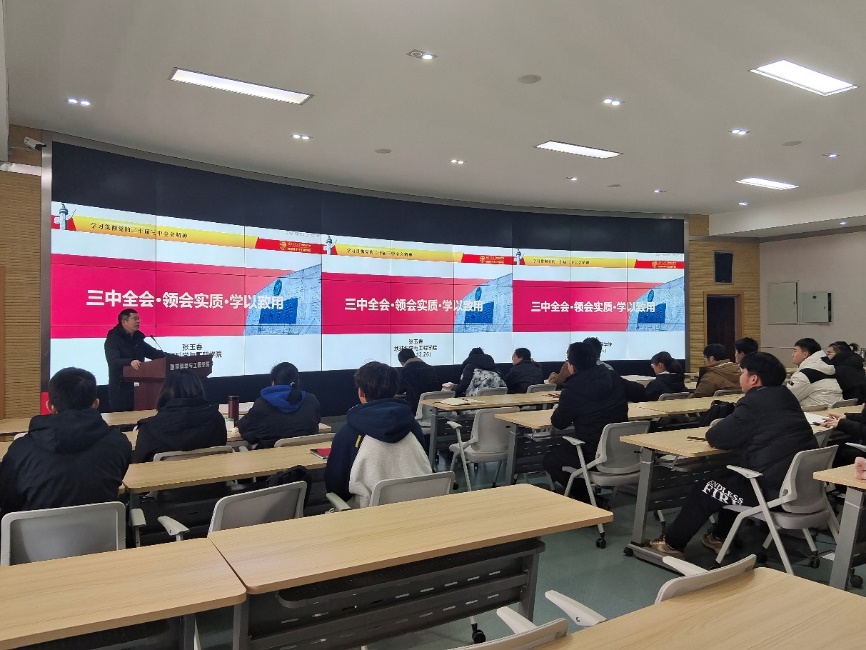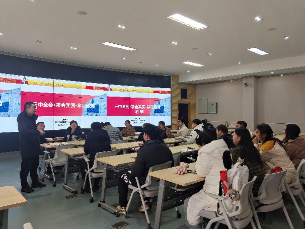张玉春同志首先介绍了党的二十届三中全会概况,带领大家学习贯彻了党的二十届三中全会精神,强调中国式现代化是在改革开放中不断推进的,也必将在改革开放中开辟广同前景。同时也带领大家回顾了改革开放以来历届三中全会,指出历届党的三中全会都承担着促进经济发展和深化体制改革的重大使命,改革与发展始终是贯穿其中的不变主题。