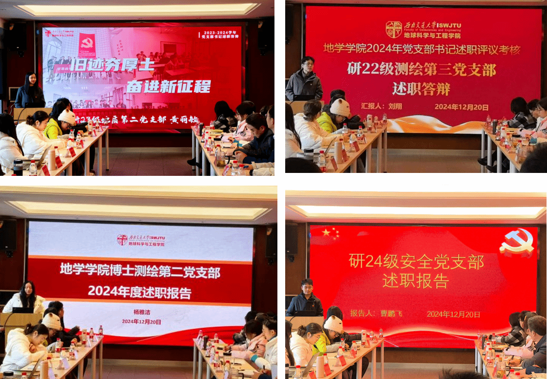 为深入学习贯彻习近平新时代中国特色社会主义思想及党的二十大和二十届二中、三中全会精神,坚持和加强党对高校的全面领导,推动全面从严治党要求在学院各基层党支部落地生根,学院于12月20日在X4520会议室举行了2024年党支部书记述职答辩大会。此次大会由18H