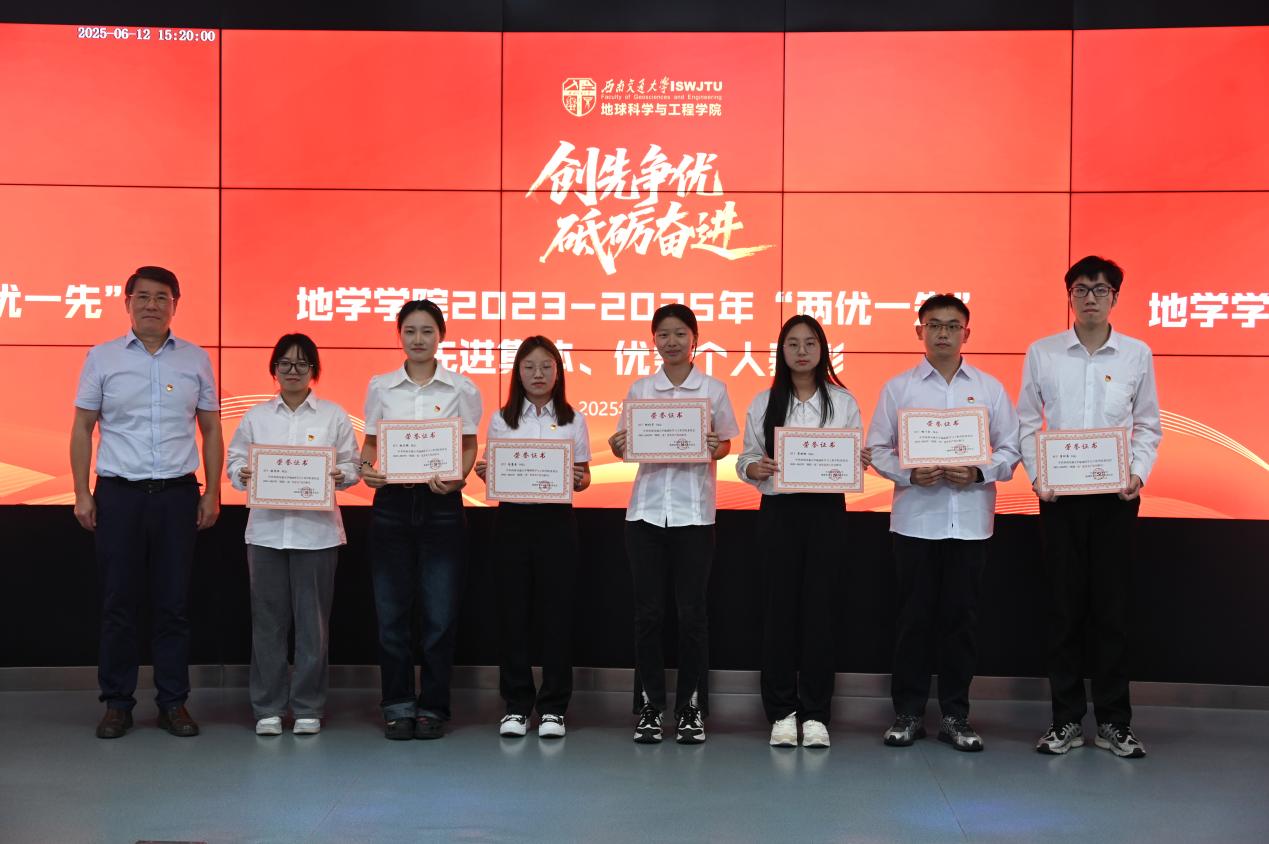 委员会关于2024-2025年“两优一先”表彰的决定》。关秦川同志、郑波同志、胡卸文同志依次为优秀共产党员、优秀党务工作者和先进党支部代表进行颁奖。