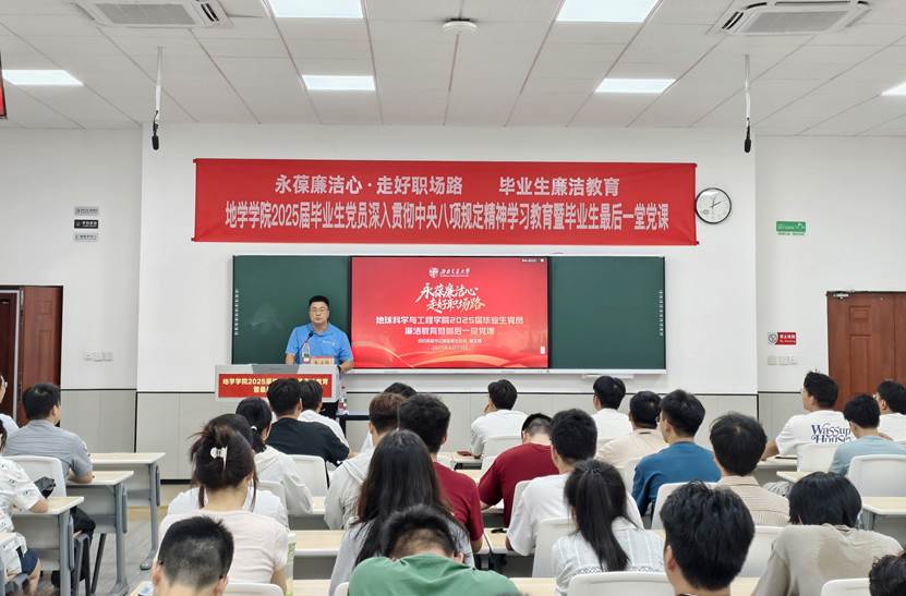 此次廉洁教育暨最后一堂党课是学院党委深化毕业生党员党性教育的关键举措,也是推动深入贯彻中央八项规定精神学习教育走深走实的重要实践。2025届毕业生党员纷纷表示,将以坚定理想信念为“灯塔”,以严格党性修养为“准则”,以清廉作风操守为“底线”,始终铭记党员身份,把廉洁自律融入血脉,在未来工作岗位上以“踔厉奋发”的姿态、“笃行不怠”的韧劲,为书写中国式现代化建设的“地学答卷”贡献自己的青春力量。