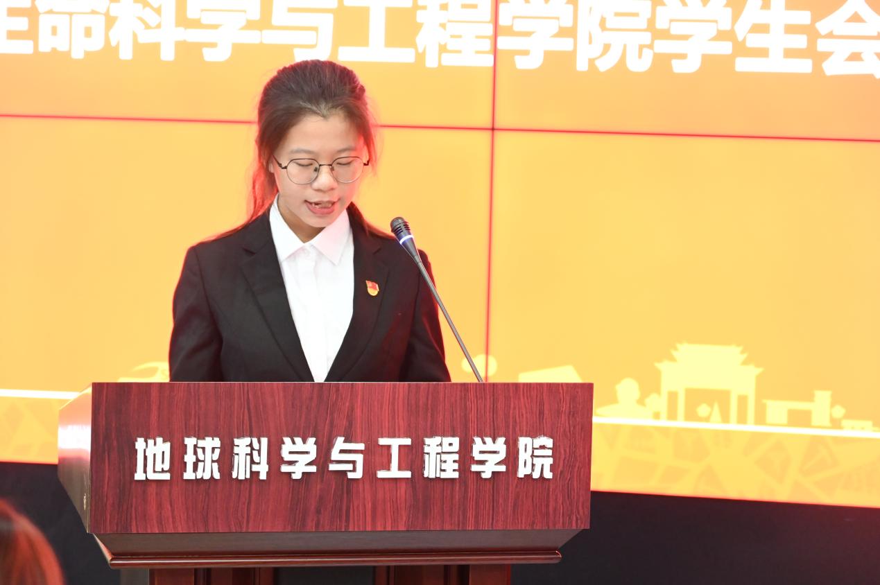 学生会主席团成员袁铭鸿同学、生命科学与工程学院学生会主席团成员施姗姗同学受邀参加大会开幕式。学生会第十五届主席团成员廖望同学主持开幕式。
