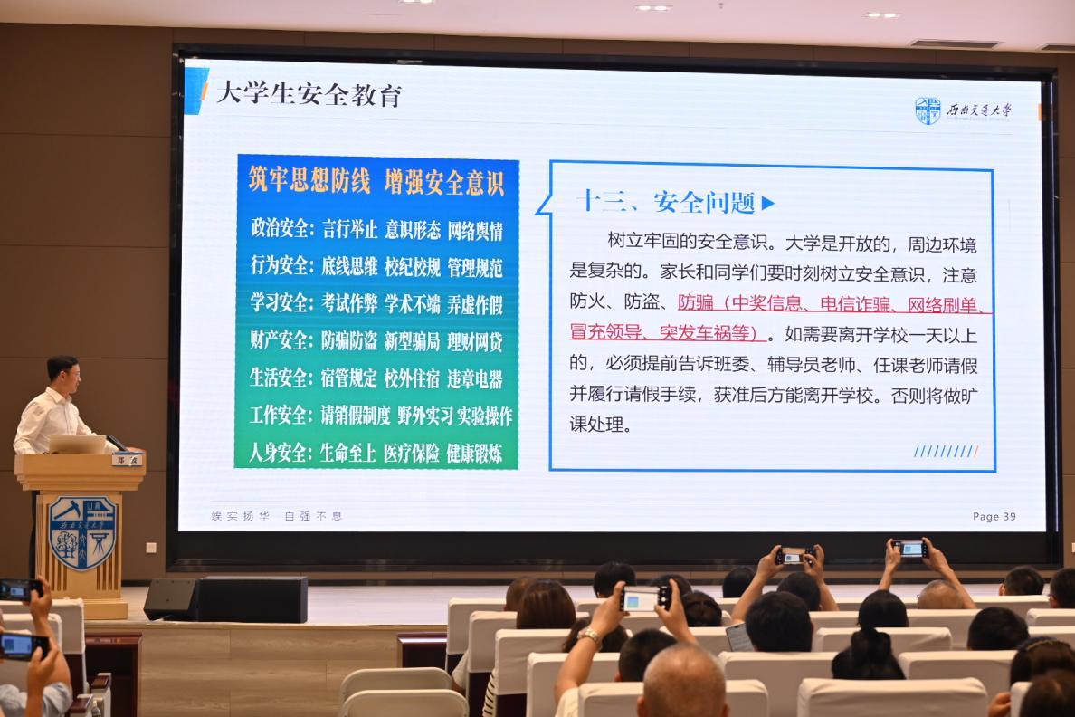 对于日常管理,郑波强调学生应做好未来规划,提高自主管理能力,在日常生活中也要严格要求自己。他指出,家长可以给予适当的帮助,多加关注但不过多干涉。最后,郑波引用校园安全事故的典型案例,提醒家长要加强对学生的安全教育,筑牢学生的安全防线,谨防受骗;呼吁家长们关心大学生的心理健康问题,给予孩子更多精神上的关心和支持。
