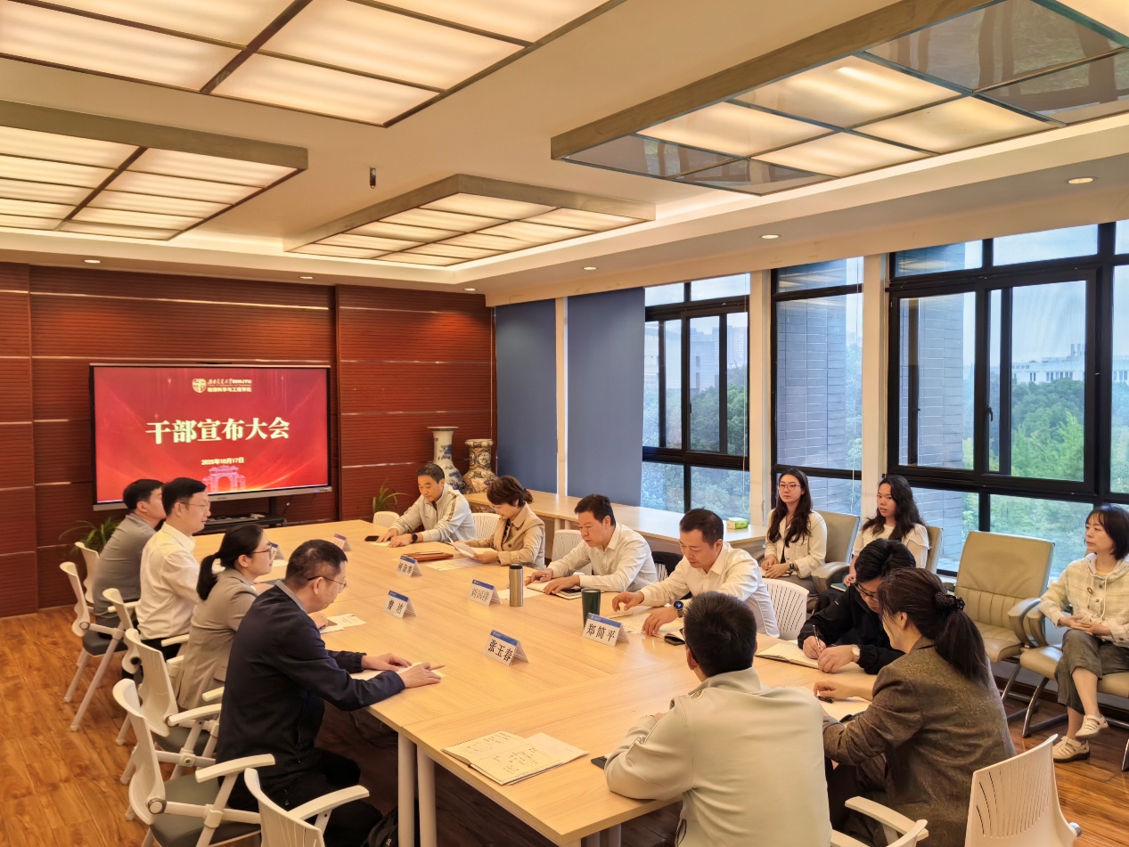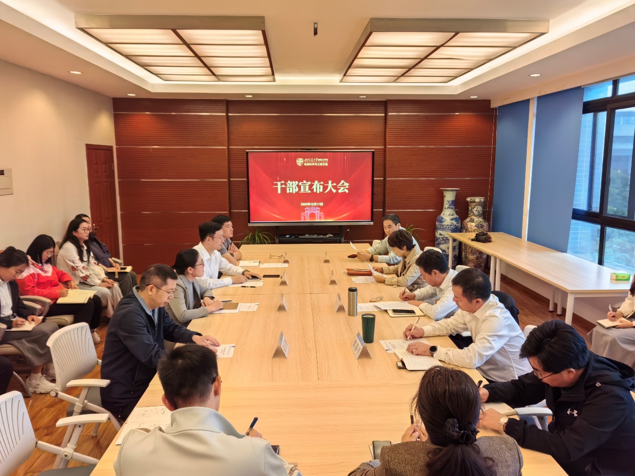 在X4531会议室召开干部宣布会议。学校党委组织部副部长何诣寒出席并讲话,学院领导班子成员、科职干部、学工组全体教师参加会议。会议由学院党委书记郑简平主持。
