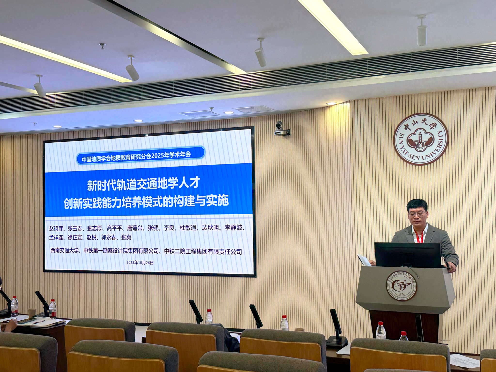等多所高校的专家教授围绕新形势下我国地学创新人才培养的新方案、新赛道与新突破开展深入研讨。带队教师赵晓彦副院长应邀参会,并作了题为“新时代轨道交通地学人才创新实践能力培养模式构建与实施”的主题报告。
