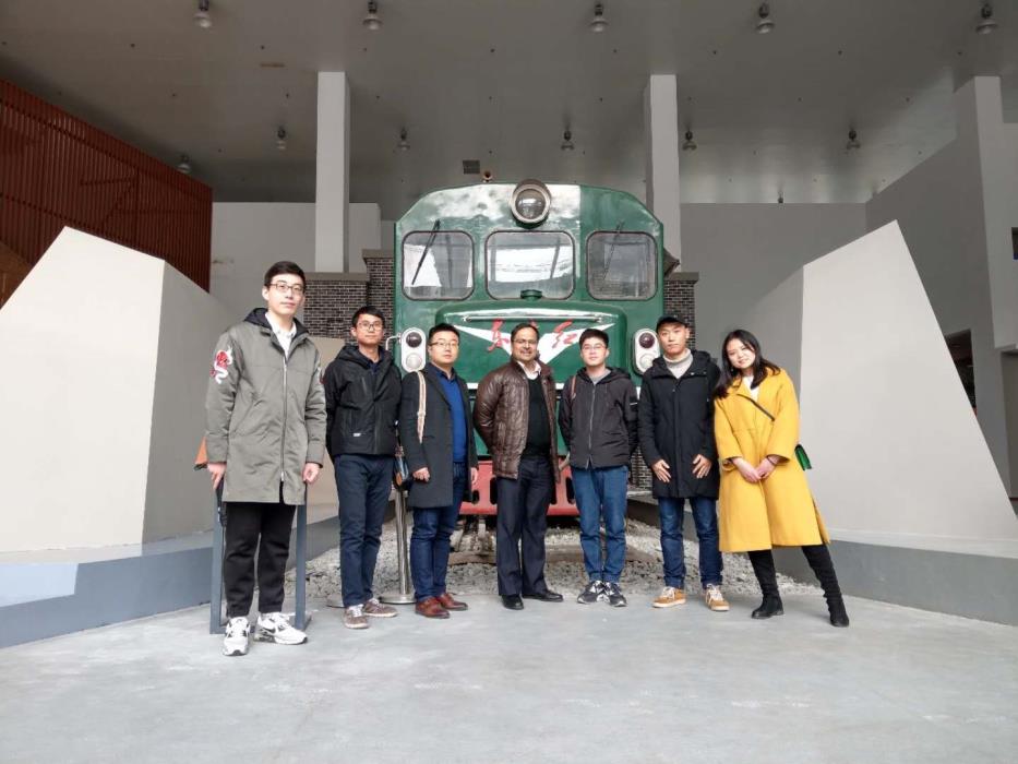 12月19日下午,Ranjan Kumar Dahal教授在杨虎峰老师等的陪同下参观了学校校史馆、机车博物馆和地质系实验室。