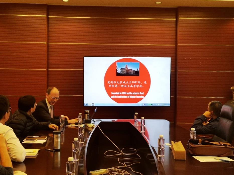 首先,爱荷华大学代表团成员先后做了自我介绍,并简述了此行的目的:旨在了解我院的教学规模、研究方向、教学资源等问题,寻求双方合作机会。