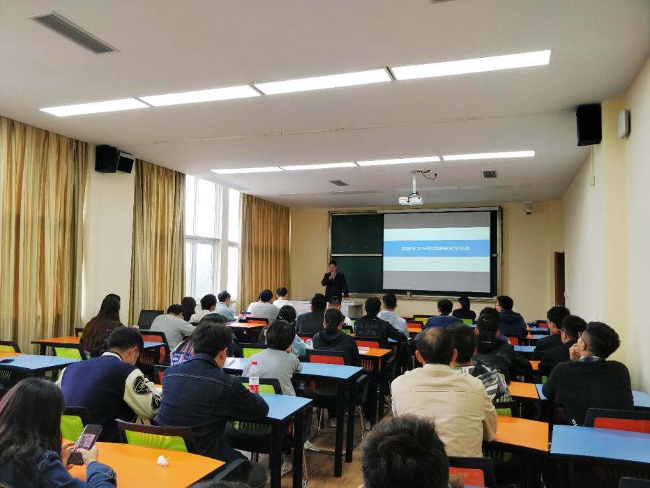 此次交流会旨在给学生们传授出国的生活和学习的经验,提升将来他们在国外的生存适应能力。在交流会之前,刘国祥院长为同学们介绍了此次交流的主讲人——英国UCL大学优秀硕士毕业生、中铁二院年轻的注册测绘师刘竹均工程师。