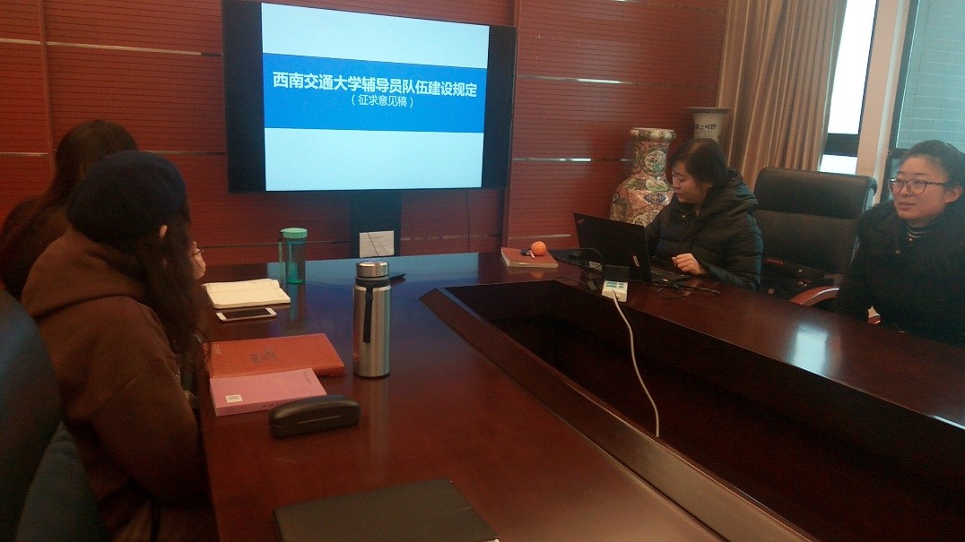 辅导员队伍建设规定》(以下简称《规定》)。参加会议的有学工组全体辅导员老师,由党委副书记傅尤刚、学工组副组长周青主讲。