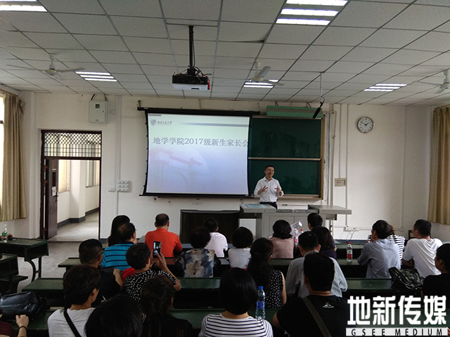 9月1日,地球科学与环境工程学院在峨眉校区X2216召开2017级新生家长会,院党委副书记傅尤刚主讲。
