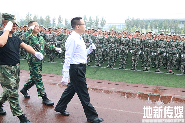 徐飞校长与周团长走到队列中依次检阅了2017级受训同学。徐飞对同学们的问候——“同学们好!”“同学们辛苦了!”不仅体现了校领导对同学们艰苦训练的关心,也是对同学们十四天以来刻苦训练的高度赞扬。同学们整齐的注目礼以及一声声“首长好!”“为校争光”展现了同学们不怕吃苦的精神和勇于承担交大人光荣使命的态度。
