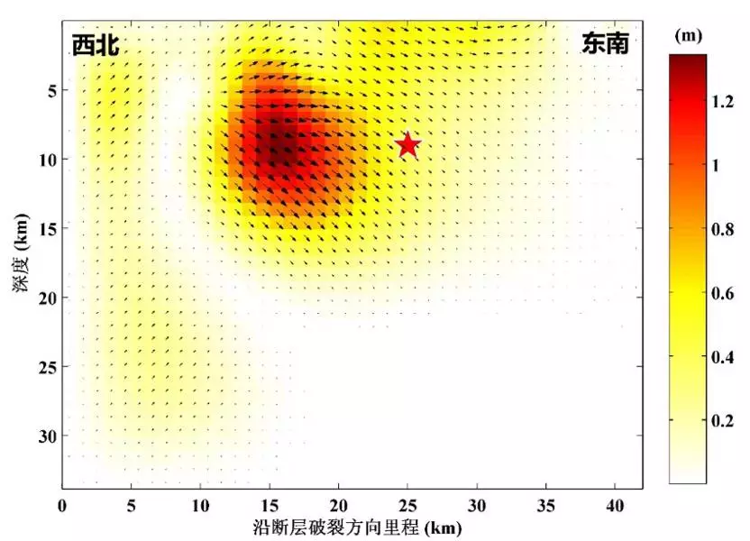 ▲图2. 基于InSAR形变反演约束的九寨沟地震断层滑动模型